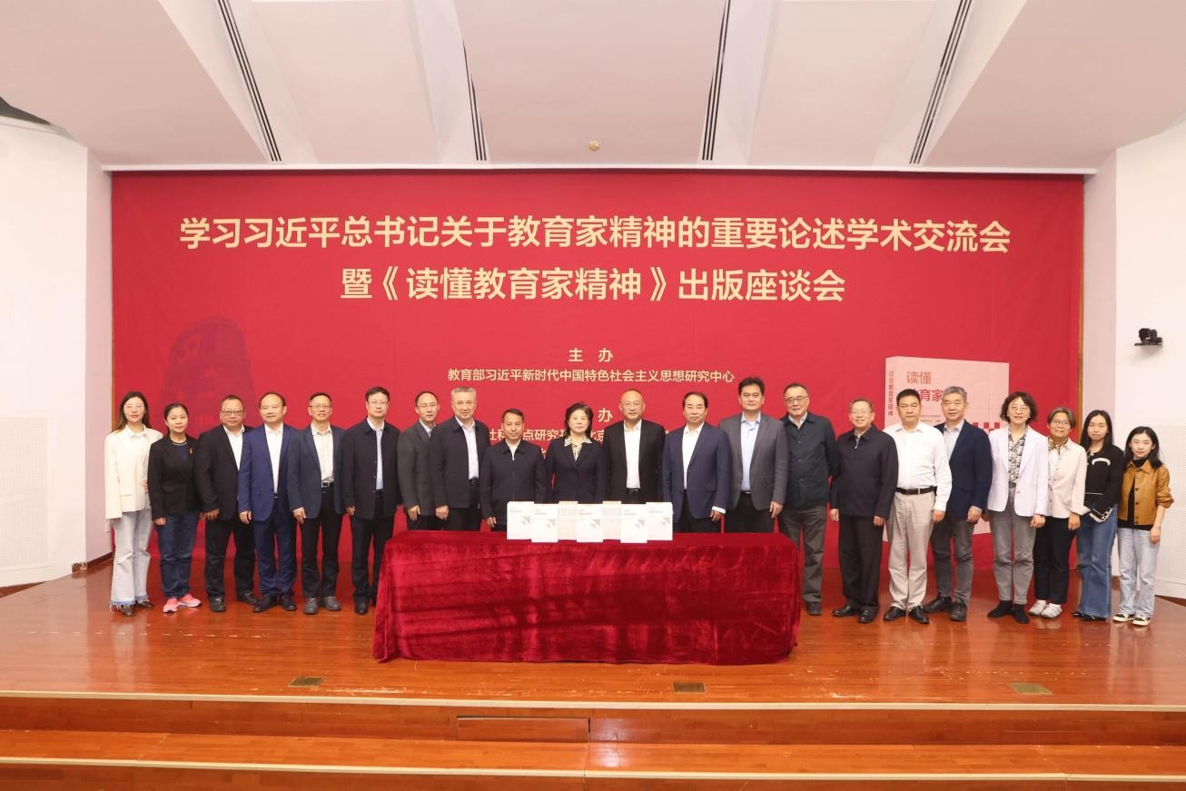 2025年10月16日上午,由教育部习近平新时代中国特色社会主义思想研究中心主办,教育部人文社科重点研究基地北京师范大学教师教育研究中心与北京师范大学出版社承办的“学习习近平总书记关于教育家精神的重要论述学术交流会暨《读懂教育家精神》出版座谈会”在北京师范大学举行。中国教育学会副会长、国家教师教育咨询专家委员会副主任庞丽娟,教育部教师工作司司长俞伟跃,教育部习近平新时代中国特色社会主义思想研究中心副主任兼秘书长、教育部高等学校科学研究发展中心主任罗方述,北京师范大学党委常委、副校长汪明,以及来自有关高校的专家学者、《读懂教育家精神》部分编写人员等参加会议。教育部高等学校科学研究发展中心副主任储新宇主持开幕式。
